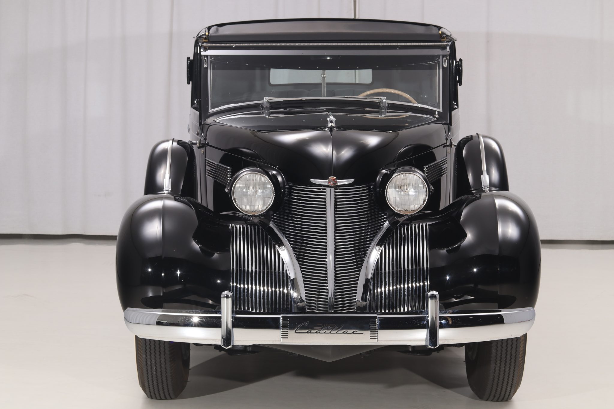The chauffeur’s compartment features a tendelet, a canopy designed by Brunn & Company engineer Victor A. Lang to be rolled into a roof compartment behind it. The Brunn body also wears custom-shaped rear fenders designed to complement its sloping tail. The front and rear doors are centrally hinged on manganese bronze A-pillar braces, and bronze castings are also used for the windshield frame, cowl, and door handles.