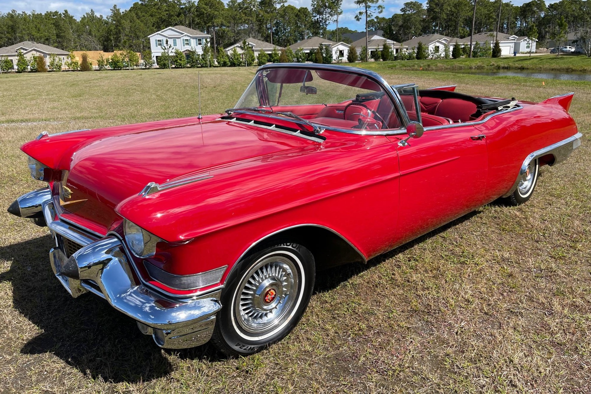 15″ steel wheels wear polished Cadillac-branded covers and are wrapped in 235/75 Hankook white-wall tires. Braking is from power-assisted four-wheel drums.