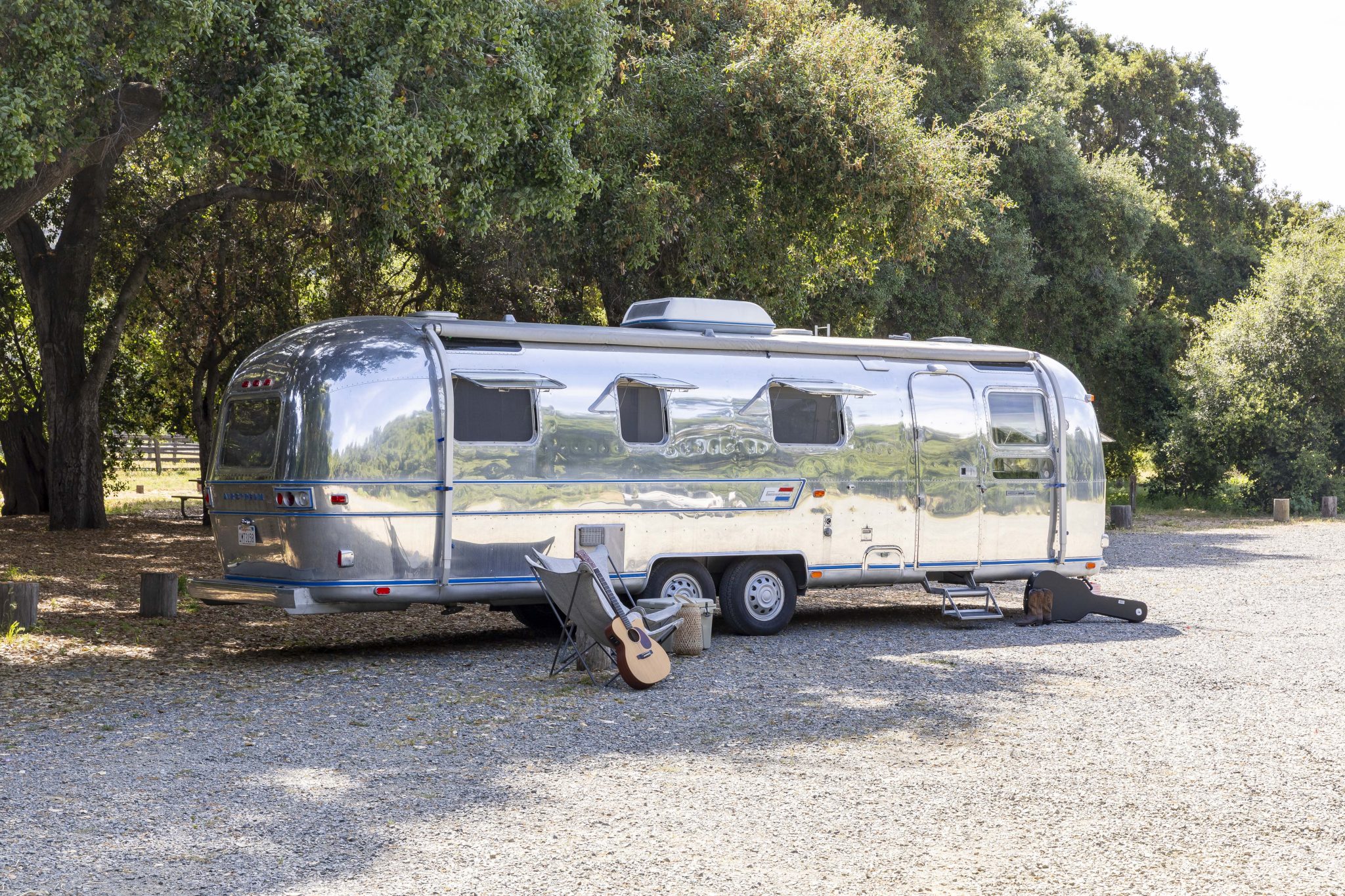 The 15″ steel wheels are mounted with 225/75 Goodyear Marathon tires manufactured in 2016. The axles and drum brakes are said to have been replaced when the tires were installed. The chassis is equipped with a power-operated tongue jack, safety chains, and four stabilizer jacks.