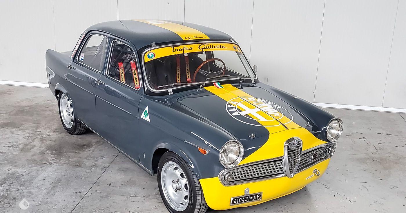 On the outside, the car is in good condition. The paint in its grey and yellow color has only very few visible defects in the gallery. The exterior plastics and seals are in very good condition, as are the headlights. The side and rear windows are in plexiglass. The seller indicates that this Giulietta is free of corrosion, pictures of the underbody are visible in the gallery.