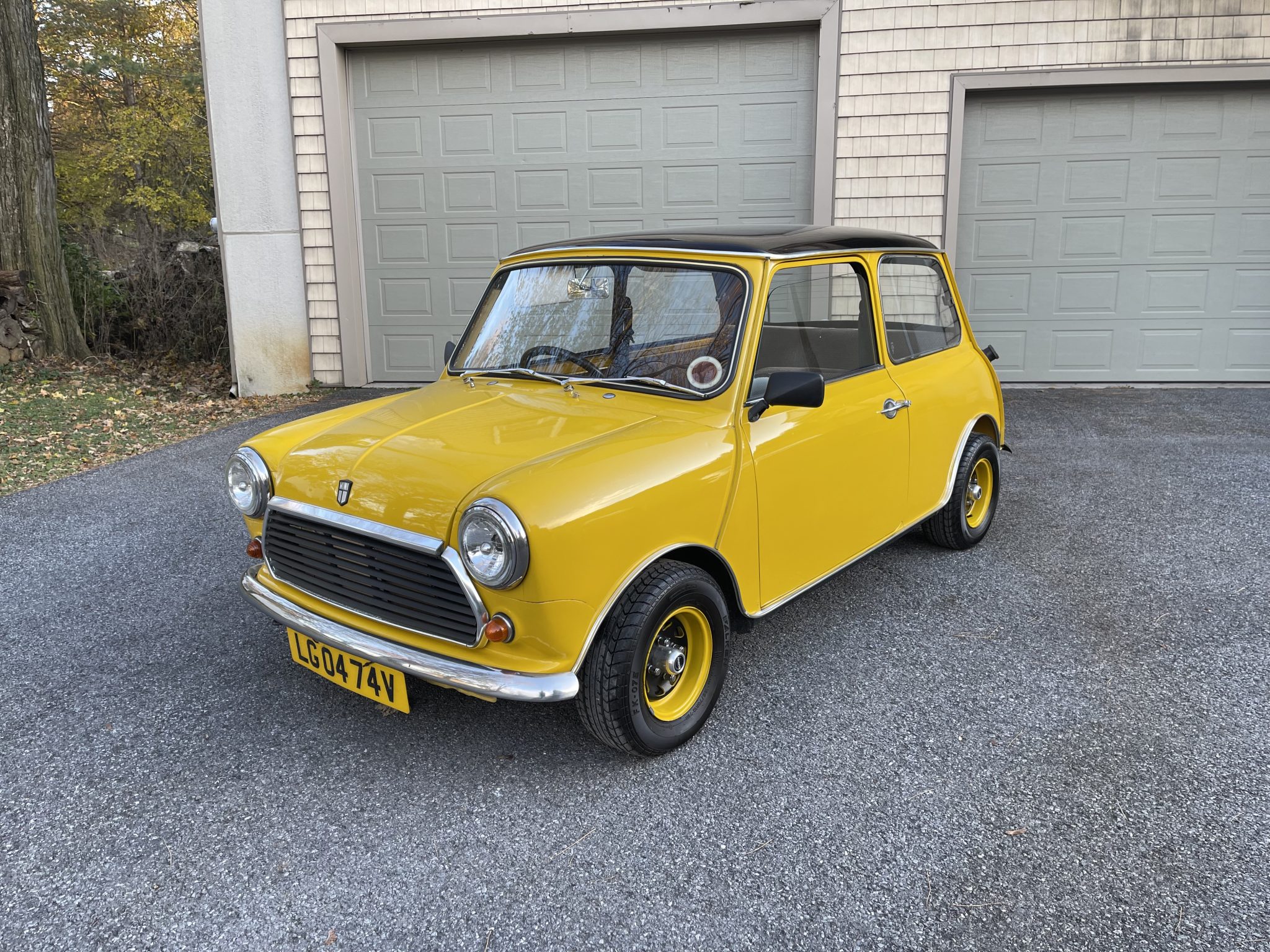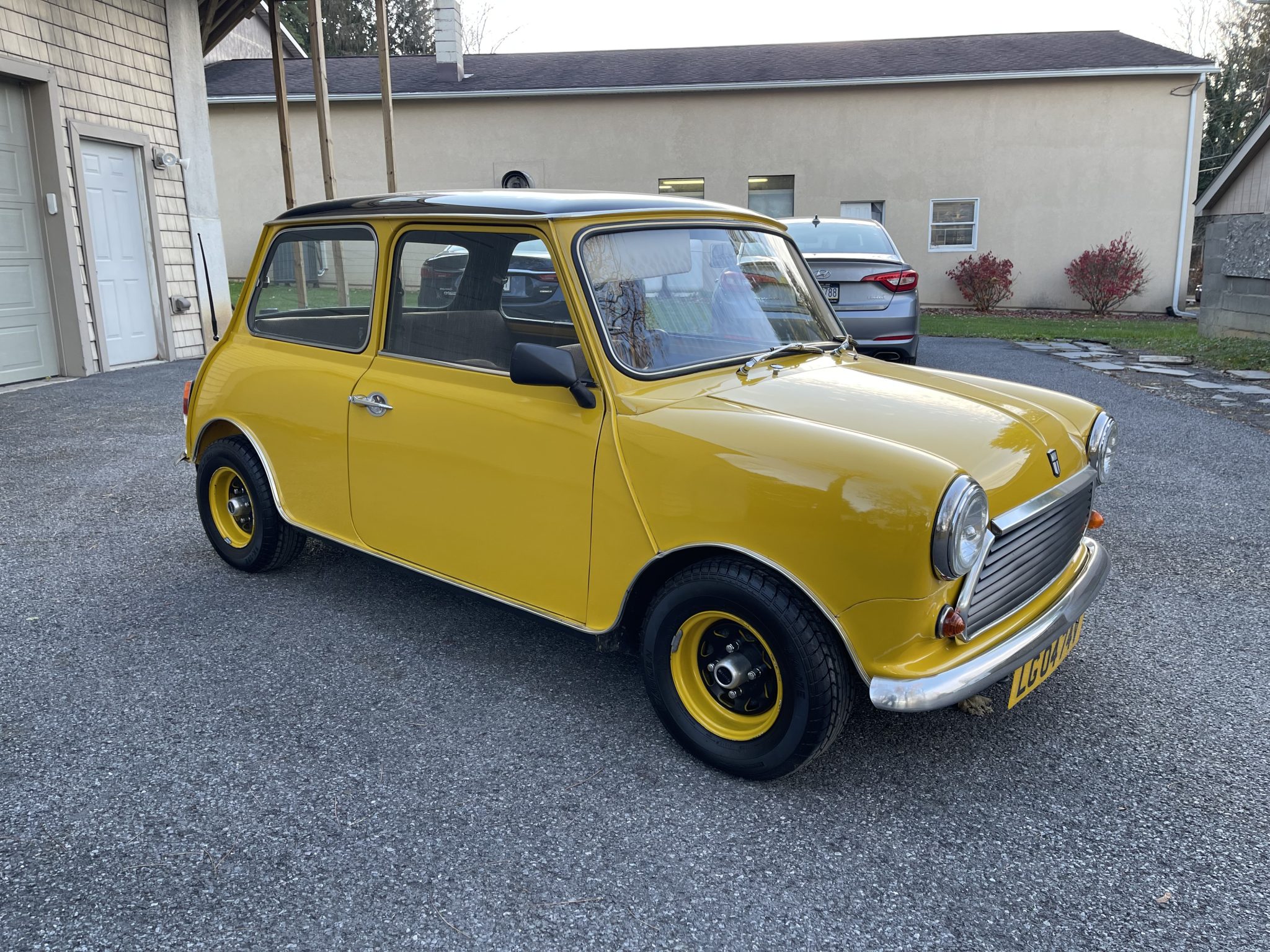 Manx 10″ steel wheels are finished in black with yellow lips and are mounted with Falken FK07E tires measuring 165/70. Braking is handled by drums at all four corners.